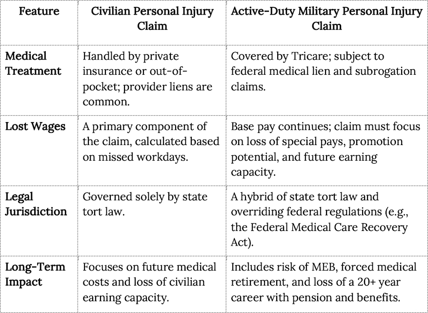 Military service scrambles the default settings of personal-injury litigation. Standard playbooks often fail.