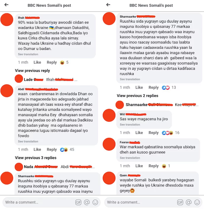 The Russian invasion of Ukraine has captured the collective attention of the world. As can be expected, views about the war differ from country to country. To try and gauge Somali public opinion about the war, I did a deep dive into the BBC News Somali page on Facebook. As experts will stress, this isn’t a scientific method to gauge public opinion.