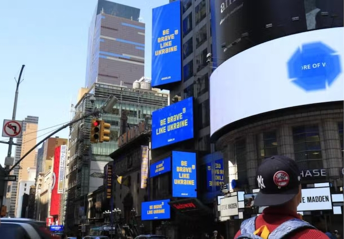 This massive communication effort is happening at a minimal cost to Ukraine. Banda is donating its services, and the Ukrainian government pays only for production costs. Media space, including high-profile billboards in Times Square and other major cities, was donated by several global media companies.